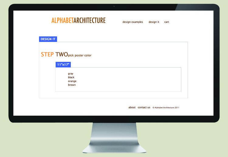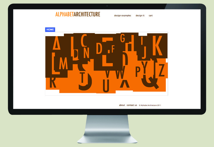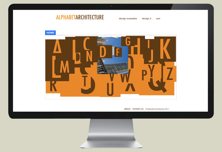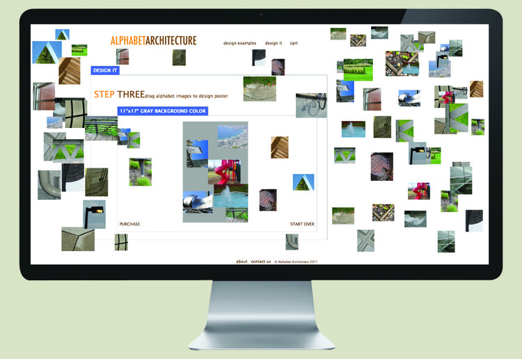 Website design for Alphabetarchitecture which is a website that provides images of alphabet shapes found in architecture. Visitors enjoy designing posters of different colors and sizes using the images provided by the website.
