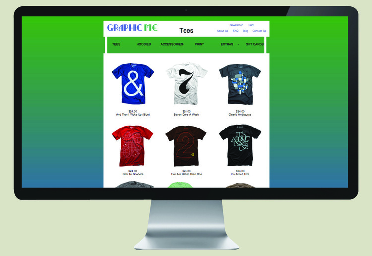 E-commerce website design for Graphic Me, which is an online graphic t-shirts store.